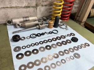 分解前にダンパーの動きを点検してみた所、動作不良を起こしオイルは殆んど入っておりませんでした💦