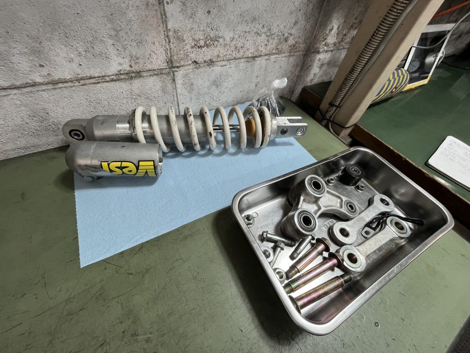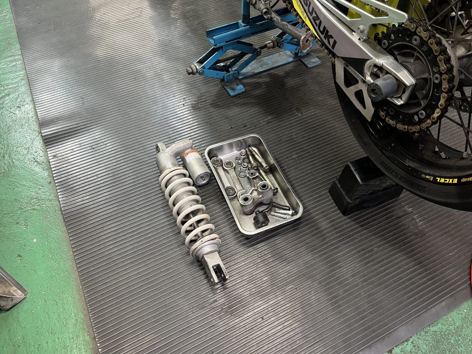 サスペンション, メンテナンス DR-Z400SM リアサスペンション周りのメンテナンス 2025年11月14日 johnnys-factory DRZ400SMも古い存在のバイクになってきたと思う今日この頃・・・。 足回りやオイル交換などのご依頼です。 先ずはリア周りから(^ ^) オーナー様のご希望でリンクアームとリアショックをメンテナンスしました。 車体に組み込んで次はフロント周りに着手します!