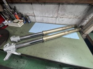 パーツが入手できない場合は再メッキになってしまうのですが、今回は錆びてしまったインナーチューブも新品に交換しました〜(^ ^)