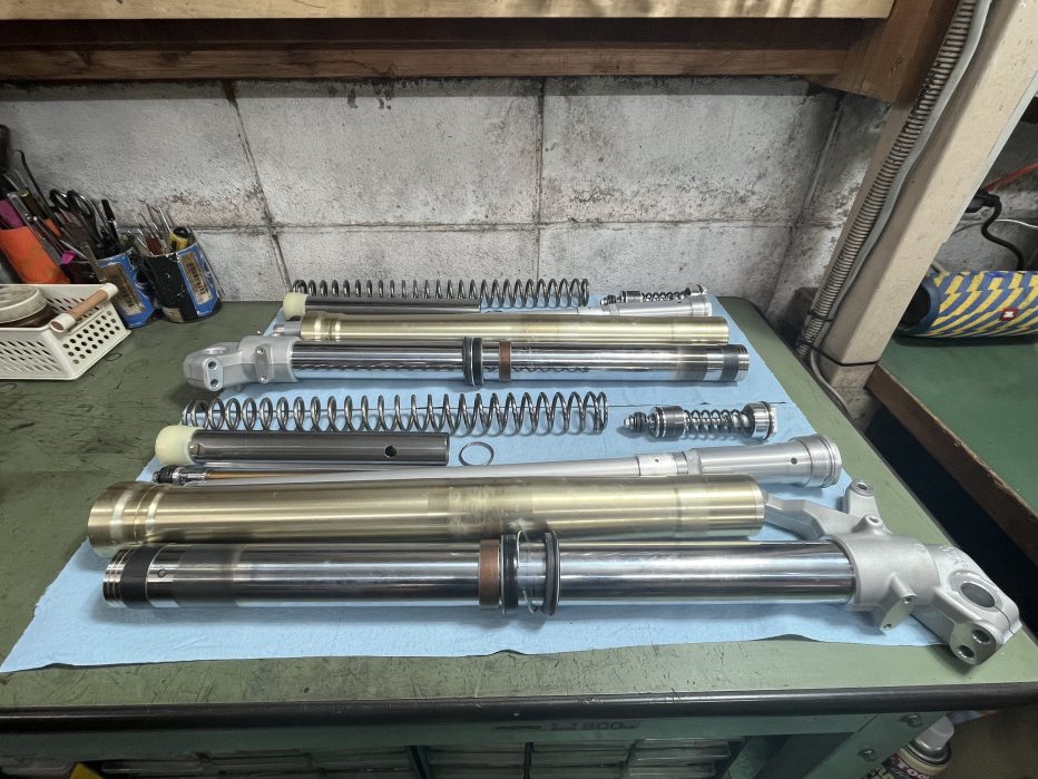 パーツが入手できない場合は再メッキになってしまうのですが、今回は錆びてしまったインナーチューブも新品に交換しました〜(^ ^)