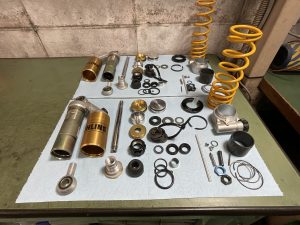 サスペンション, 修理 XJR1300 純正リアショックのオーバーホール 2026年3月20日 johnnys-factory ショックロッドが錆びてメッキが浮いてきていました なのでロッドは再メッキして組み上げました。