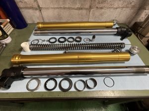 サスペンション, 修理 CRF250RALLYのフロントフォーク オイル漏れ修理 2026年4月27日 johnnys-factory 左右共にオイルがダダ漏れしてました・・・。 大きな異常はありませんでしたので一安心しました。