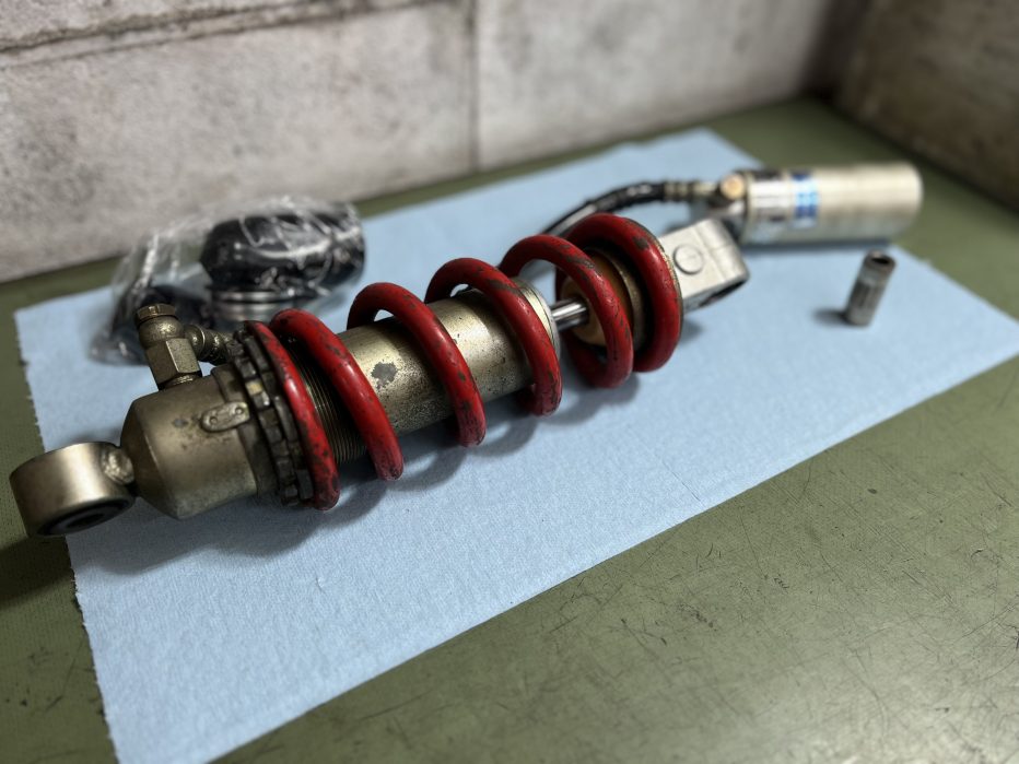 サスペンション, メンテナンス Ohlins Shock オーバーホール 2025年12月11日 johnnys-factory GPZ400F用の古いオーリンズです。 ヤレてはいますが、大きなダメージはありませんでした